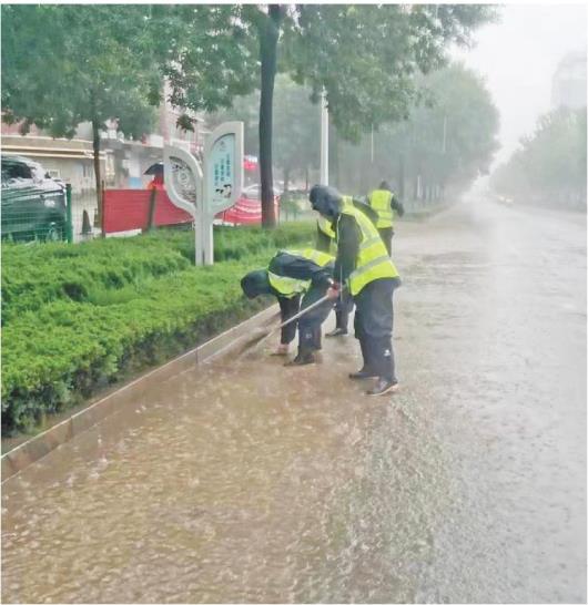 7月11日夜至12日,中雨長時間不停。平陰縣住建局所屬各基層單位、科室60名防汛人員、機(jī)械設(shè)備對當(dāng)?shù)?0處易積水點進(jìn)行排水作業(yè)。