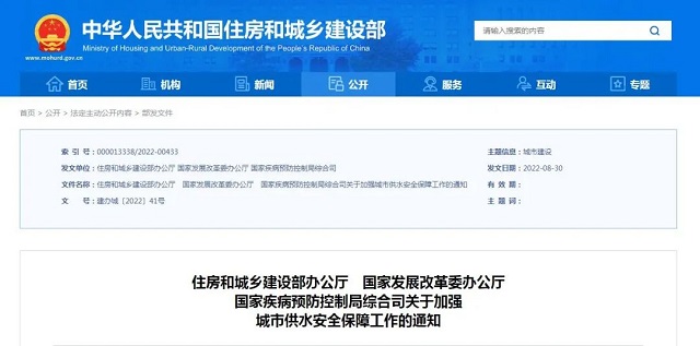 城市供水是重要的民生工程,事關(guān)人民群眾身體健康和社會穩(wěn)定。近日,為進一步提升城市供水安全保障水平,住房和城鄉(xiāng)建設(shè)部辦公廳、國家發(fā)展改革委辦公廳、國家疾病預(yù)防控制局綜合司聯(lián)合印發(fā)《關(guān)于加強城市供水安全保障工作的通知》。通知提出,自2023年4月1日起,城市供水全面執(zhí)行《生活飲用水衛(wèi)生標準》;到2025年,建立較為完善的城市供水全流程保障體系和基本健全的城市供水應(yīng)急體系。