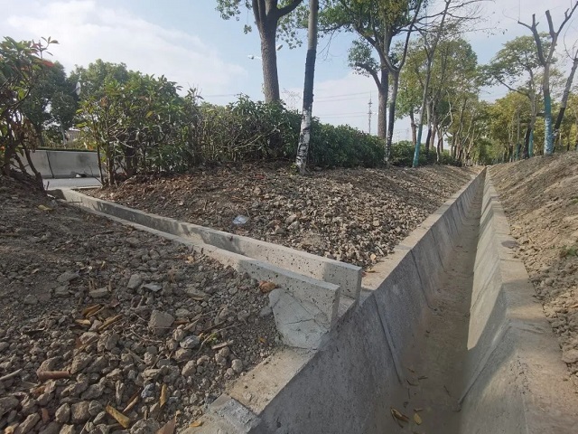 在趙重公路新豐支路至滬常高速段,由于道路兩側(cè)地塊標(biāo)高較高,排水溝淤堵、填埋導(dǎo)致雨天經(jīng)常出現(xiàn)內(nèi)澇情況。針對該路段積水原因,改造工程重點(diǎn)解決路面積水匯流及排水出路問題,在非機(jī)動(dòng)車道外側(cè)新建流水槽,將非機(jī)動(dòng)車道外側(cè)積水引流至道路外側(cè),翻挖新建邊溝、雨水連通管和雨水口,實(shí)現(xiàn)及時(shí)排水。“之前道路設(shè)計(jì)是自排水的,依靠道路兩側(cè)的土溝收集雨水,隨著這幾年道路周邊地塊開發(fā),土溝已經(jīng)不滿足排水要求,所以按照五年一遇的暴雨降水量,在道路兩側(cè)增設(shè)混凝土明溝收集道路雨水,現(xiàn)在施工已經(jīng)完成,觀察下來,道路沒有發(fā)生過積水問題。”青浦區(qū)道路運(yùn)輸管理事務(wù)中心工作人員徐華介紹。