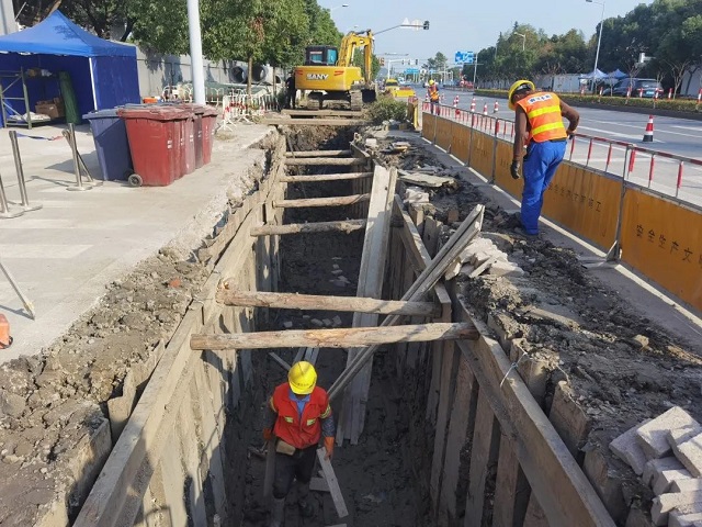在外青松公路千新公路至油墩港路段,積水點(diǎn)改造項(xiàng)目進(jìn)入到排水管道鋪設(shè)和雨水井施工的收尾工作。據(jù)該項(xiàng)目負(fù)責(zé)人介紹,以往每逢暴雨期間,外青松公路、千新公路交叉口積水嚴(yán)重,對周邊人員正常出行造成很大的影響。為徹底解決積水問題,在外青松公路道路新建雙排管口直徑為1000毫米雨水管道,自千新公路西側(cè)起排,收集道路路面及兩側(cè)地塊雨水后排入油墩港,減輕片區(qū)的排水壓力,解決困擾周邊居民已久的內(nèi)澇問題。“之前的排水系統(tǒng)年代久,管道積淤情況嚴(yán)重,而且這邊道路地勢比較低,非常容易積水。這次改造施工主要以大口徑的管道的排設(shè)為主,在非機(jī)動(dòng)車道上增設(shè)進(jìn)水井,在雨量大的時(shí)候可以及時(shí)水排走,達(dá)到解決積水問題的效果。”積水點(diǎn)改造項(xiàng)目經(jīng)理張?jiān)凑f。