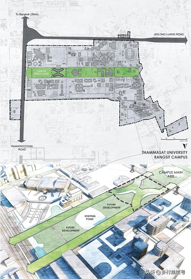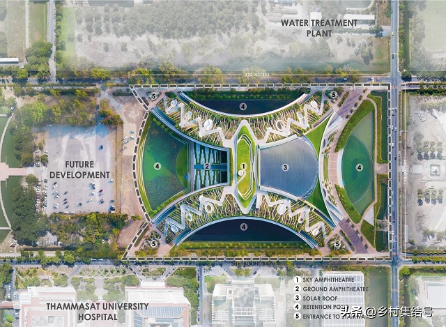 于是,為了振興其所處的土地,泰國國立法政大學(xué)(Thammasat University),在設(shè)計(jì)師的幫助下,重新利用了建筑上被忽視的236806平方英尺的(約22000平方米)屋頂空間,包括有7000平方米的農(nóng)業(yè)區(qū),打造了一個(gè)亞洲最大的屋頂有機(jī)農(nóng)場。農(nóng)場融合了可持續(xù)糧食生產(chǎn)、能源再生、有機(jī)廢物、水資源管理,創(chuàng)造了校園綜合循環(huán)經(jīng)濟(jì),同時(shí)農(nóng)場還可滿足城市休閑,是一處公共活動(dòng)空間。接下來,小編就說一說這座屋頂農(nóng)場的具體設(shè)計(jì)。