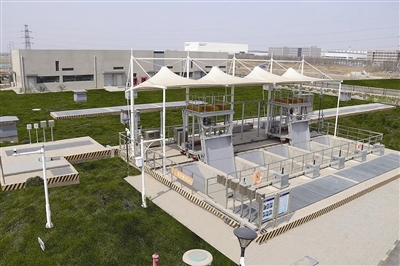 該項(xiàng)目是空港區(qū)域首個(gè)系統(tǒng)性海綿城市調(diào)蓄工程,集控制初期雨水徑流污染、削減洪峰流量和排放雨水三重功能于一身,總規(guī)劃收水范圍為航空產(chǎn)業(yè)區(qū)內(nèi)343公頃,包含9條道路和2座調(diào)蓄池。兩座調(diào)蓄池占地面積約為10000平方米,道路雨水出水管道長(zhǎng)度約為18480米,人行道透水鋪裝約為61000平方米,調(diào)蓄泵站峰值排放流量14.6立方米/秒。該項(xiàng)目于2020年11月開(kāi)工,已順利完工驗(yàn)收,計(jì)劃今年年內(nèi)投入使用。
