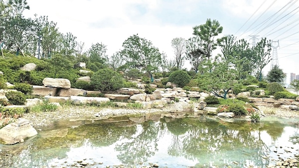 據(jù)介紹,該處抽取附近中心溝內(nèi)的中水,從高處流下,形成疊石瀑布的景觀。一座座水池,加上周邊層次變化豐富的植被、花卉,形成一個(gè)個(gè)小微濕地,成為梧桐雨的天然蓄水池,向7大區(qū)域的周邊植被供水。數(shù)據(jù)顯示,中水回用可覆蓋片區(qū)內(nèi)214公頃綠化灌溉和水體補(bǔ)給,年節(jié)水64.5萬(wàn)立方米,年節(jié)約成本187萬(wàn)元。