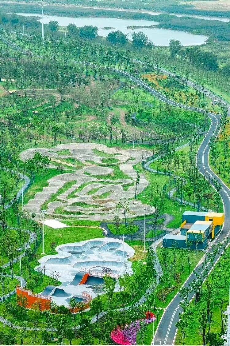 梧桐雨最高點(diǎn)杜鵑溪谷,是結(jié)合府河沿岸原有地形高差,由場(chǎng)內(nèi)渣土“二次利用”堆積的小山。