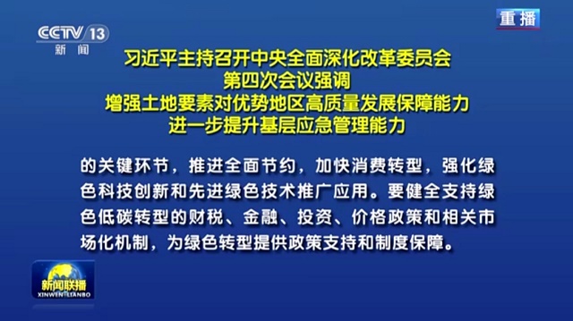 2月19日下午,中共中央總書記、國(guó)家主席、中央軍委主席、中央全面深化改革委員會(huì)主任習(xí)近平主持召開中央全面深化改革委員會(huì)第四次會(huì)議,審議通過(guò)了《關(guān)于促進(jìn)經(jīng)濟(jì)社會(huì)發(fā)展全面綠色轉(zhuǎn)型的意見(jiàn)》等重要文件。