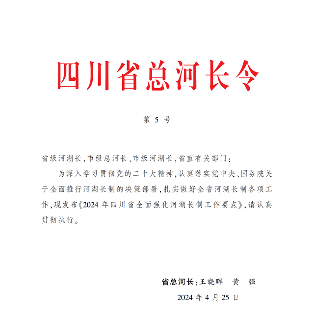 當前位置:首頁 > 國內行業 > 四川省發布省總河長5號令安排部署年度工作