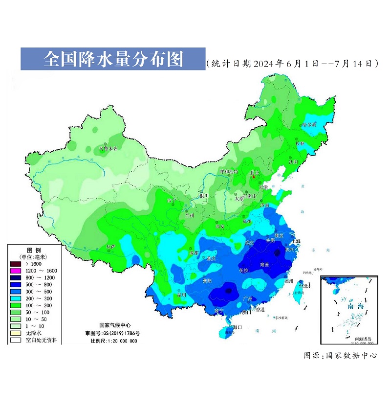 今年上半年我國共出現(xiàn)19輪暴雨天氣過程,長江以南大部降雨偏多。統(tǒng)計數(shù)據(jù)顯示,長江以南地區(qū)6月的累計降雨量普遍達(dá)到300至500毫米,其中,廣東海豐降雨最多,累計降雨量高達(dá)2332.6毫米,廣西防城港市防城區(qū)以14個暴雨日成為暴雨最頻繁的地方。