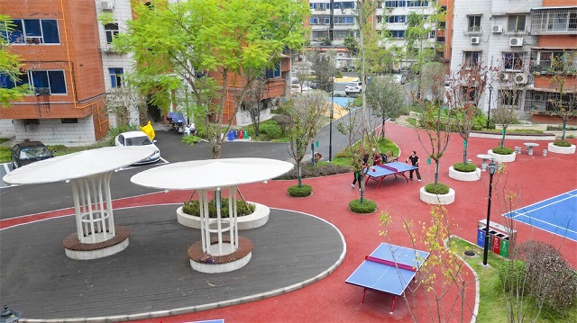 “按照海綿城市理念,在地磚下鋪設管溝,自然引流、匯集地面的雨水,并挖掘兩處淺凹地蓄水,種植喜水植物,就形成了雨水花園?!壁w翔說,在臨街景觀帶增設健身器材、兒童娛樂設施等公共設施,實現海綿與娛樂、自然與功能有機融合,以開放包容的形式融合了小區與社區的關系。