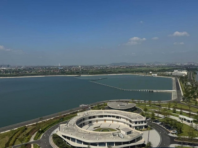位于廣州南沙的珠三角水資源配置工程高新沙泵站調(diào)壓塔上俯瞰粵海湖