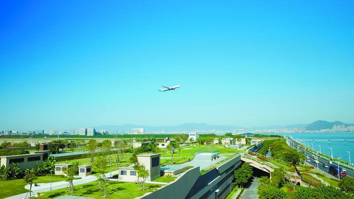 高崎水質(zhì)凈化廠位于廈門(mén)本島高崎機(jī)場(chǎng)以南,通過(guò)半地下集約式的建設(shè)形式,上層建設(shè)屋頂花園、中間層設(shè)為運(yùn)營(yíng)維護(hù)空間、地下層布置污水污泥處理構(gòu)筑物和管道,將城市景觀、運(yùn)營(yíng)維護(hù)、污水處理三大功能上下疊合,從空間上高效利用土地資源,實(shí)現(xiàn)20萬(wàn)噸/日的處理規(guī)模。同時(shí),為廈門(mén)本島高崎機(jī)場(chǎng)T4航站樓的開(kāi)發(fā)預(yù)留景觀延伸帶,將稀缺景觀資源帶給市民,構(gòu)建了“人水和諧”的全新生態(tài)空間。