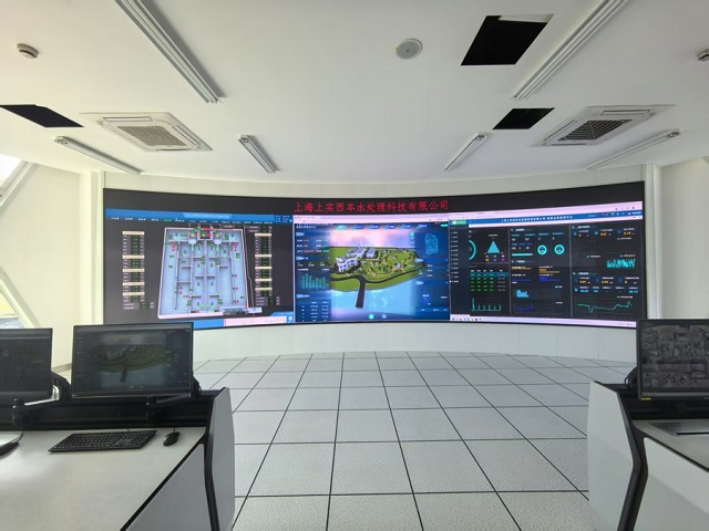 圖為上實環(huán)境西岑污水處理廠的數(shù)字化中控大屏。