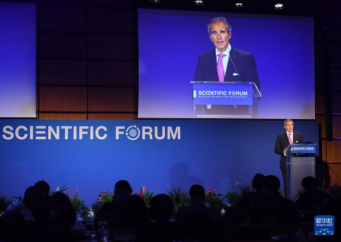 9月16日,在奧地利維也納,國際原子能機構(gòu)總干事格羅西在“原子用于水資源”科學(xué)論壇上致辭。新華社記者賀燦鈴攝