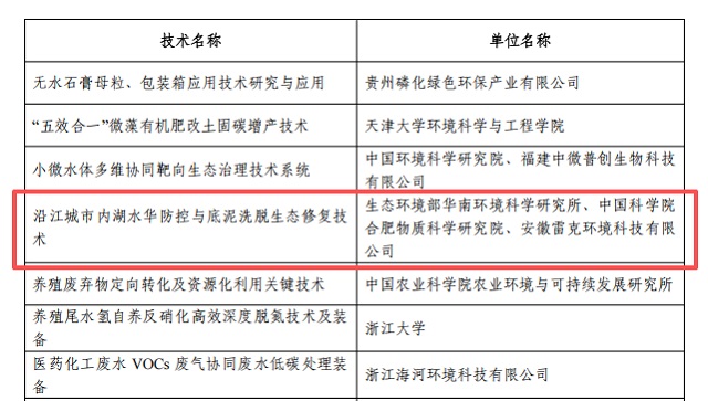 長(zhǎng)江生態(tài)環(huán)境保護(hù)修復(fù)遴選技術(shù)清單